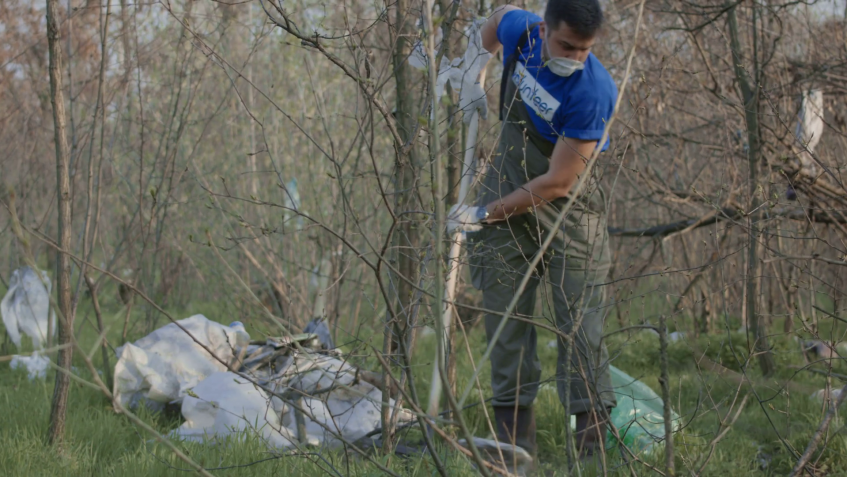 Mi persze nem szoktunk arra várni, hogy valaki úgy érezze, az ő dolga ott tisztogatni, nem is fontos, gondoltunk, megyünk, rendet teszünk. És mentünk is, magunk örömére, mások szolgálatára. Megemlítek azért még pár dolgot, amit ott találtunk – az alkoholos üvegek mellett. Kedvencem a wc ülőke, rendesen támlával, épp csak a Domestos kacsa hiányzott. Régóta lehetett már ott, erre következtettünk abból, hogy mélyen nyomta már be súlyával a földet. Sajnálatosan hiába ajánlottam fel mindenkinek, senkinek nem volt gondja az otthoni fürdőszobai kellékkel, így ez az egyetlen cucc, amit kénytelenek voltunk otthagyni, várunk egy kis időt, aztán kitaláljuk, hogy vihetnénk el mégis onnan. Az elhagyott zsákok tele vízzel ehhez képest apróságok, viszont találtunk egy autós táblát, rajta felirattal: „ez az autó Ferrari-alkatrészekből épült”. Ezt a táblát emlékül megtartjuk magunknak.